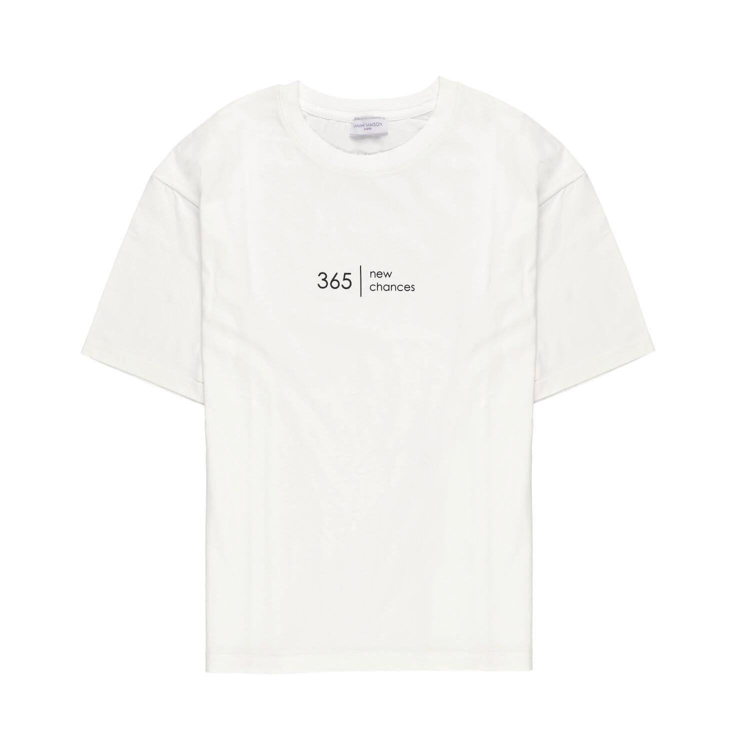 La camiseta 365 new chances es una pieza básica que no puede faltar en tu armario. Está fabricada con algodón 100% en un tono blanco hueso. De corte oversized, manga corta y cuello redondo con canalé. Muestra detalle con logo en la espalda. Escoge tu talla real.